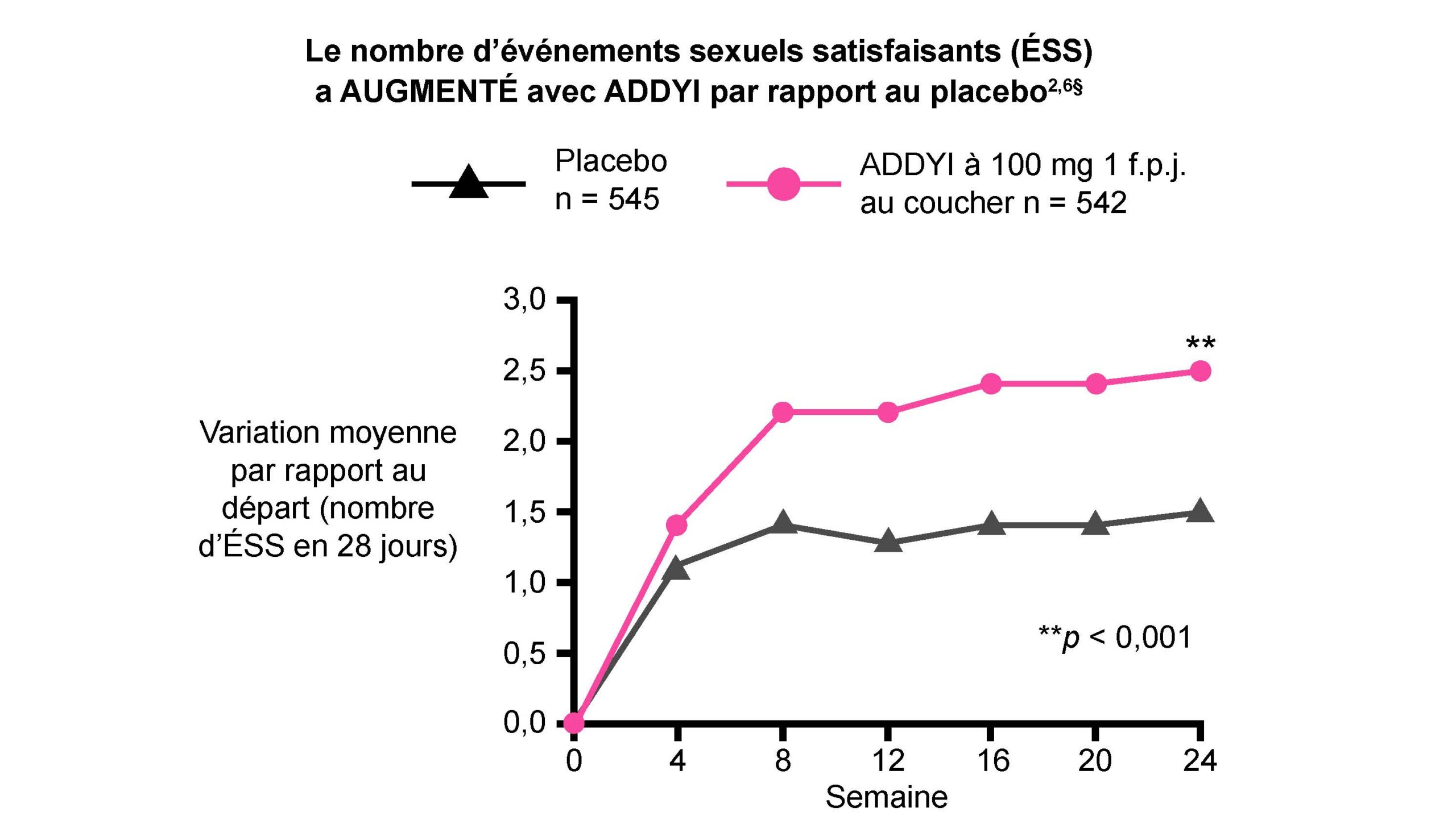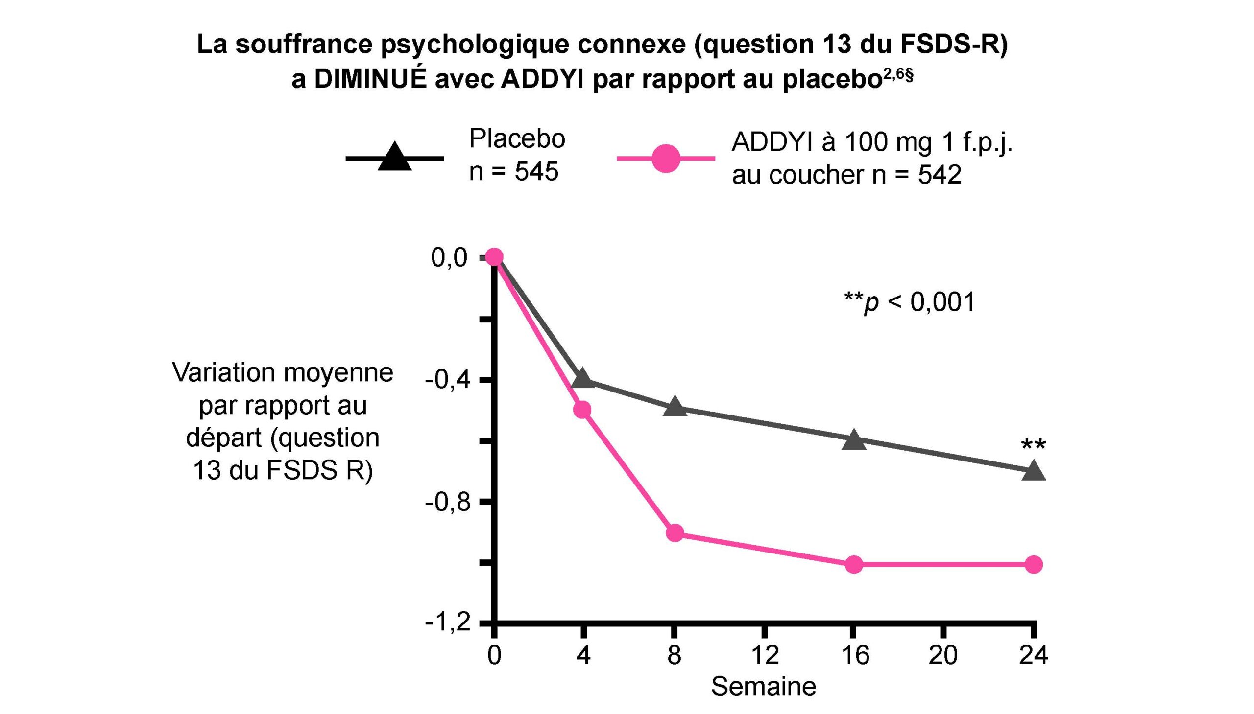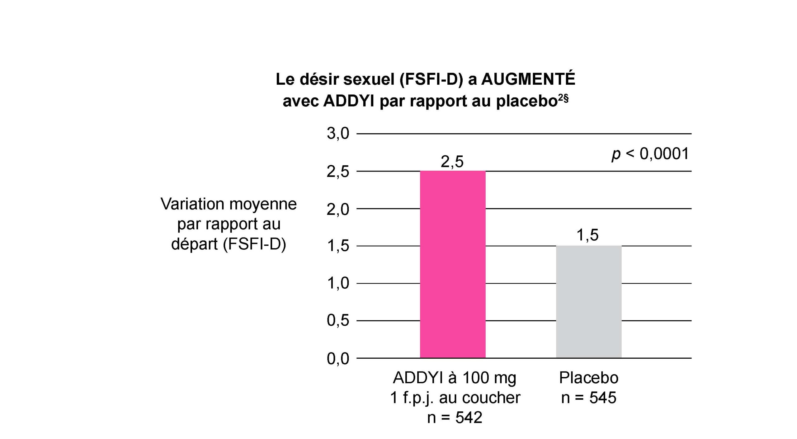 Paramètre d’évaluation principal : variation par rapport au départ – ADDYI 2,5; placebo 1,5
